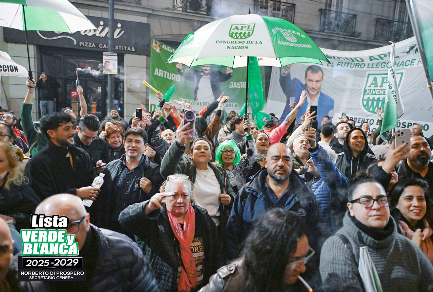 Con un triunfo contundente de la Lista Verde y Blanca en la urnas que alcanzó el 85,5% de los votos en el marco de una participación histórica del padrón de afiliados, Norberto DI PRÓSPERO fue reelecto para un sexto período 2025-2029 como Secretario General de la Asociación del PERSONAL LEGISLATIVO (APL). Una elección que ratifica 21 años de gestión y fortalecen a APL como institución para seguir defendiendo lo logrado y conquistar nuevos derechos.