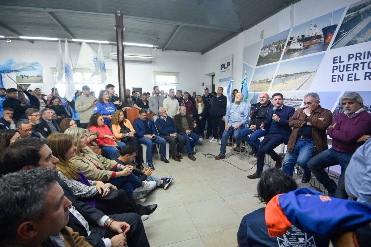 «Hace mucho tiempo que la Argentina en diferentes gobiernos, en diferentes circunstancias, viene poniendo en riesgo y entregando soberanía”, esgrimió KICILLOFK, Y agregó: “Eso es cierto, pero quiero decir que los trabajadores del sector, de la industria naval, los trabajadores de los buques, los trabajadores de los puertos, han sido siempre los guardianes de esa memoria y los defensores también».
