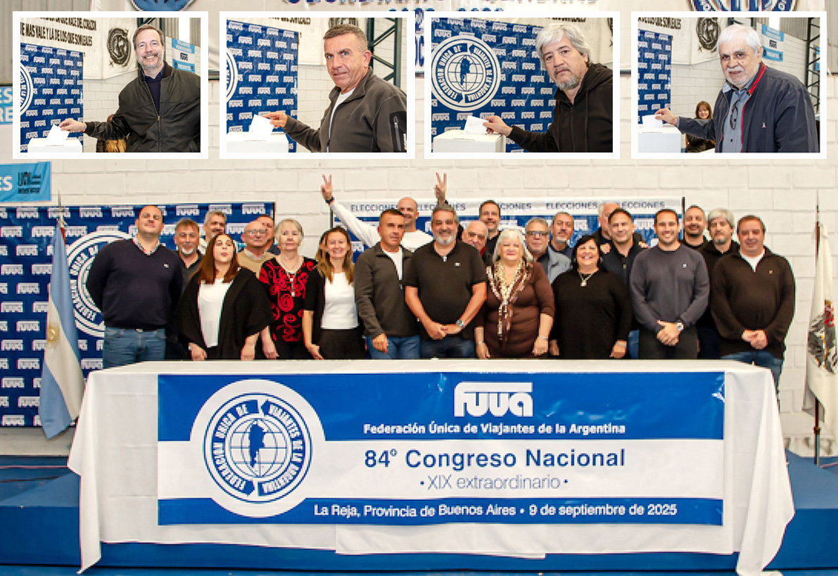 Con la participación de los representantes de 20 Filiales adheridas de todo el país, la Federación Única de Viajantes de la Argentina (FUVA) realizó su Congreso Nacional Extraordinario de renovación y elección del nuevo Consejo Directivo que regirá las políticas de la organización gremial para el período 2025-2029. En ese marco, los Delegados Congresales de los Sindicatos de Viajantes Vendedores presentes reeligieron con su voto por un nuevo mandato desde la Secretaría General de la FUVA a Lucho CEJAS, titular de la Asociación de Viajantes Vendedores de la Argentina (AVVA).