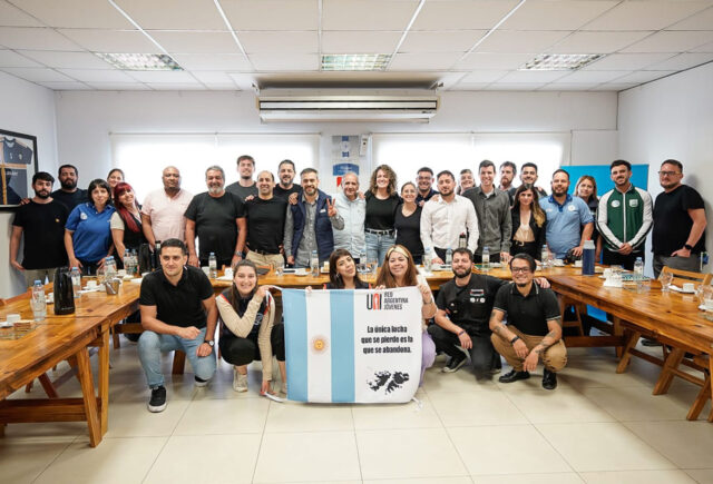 En el marco de las elecciones de medio término que se llevaran a cabo este domingo 26 de octubre, el secretario general de la Federación Única de Viajantes de la Argentina (FUVA) Luis «Lucho» CEJAS, junto a sus pares del Consejo Directivo y a jóvenes de distintos gremios que conforman la Red Argentina de UNI Jóvenes, recibieron a los compañeros y candidatos de FUERZA PATRIA, el economista y docente Itai HAGMAN y el titular de La Bancaria Sergio PALAZZO, Diputados de la Nación que van por la renovación de sus bancas.