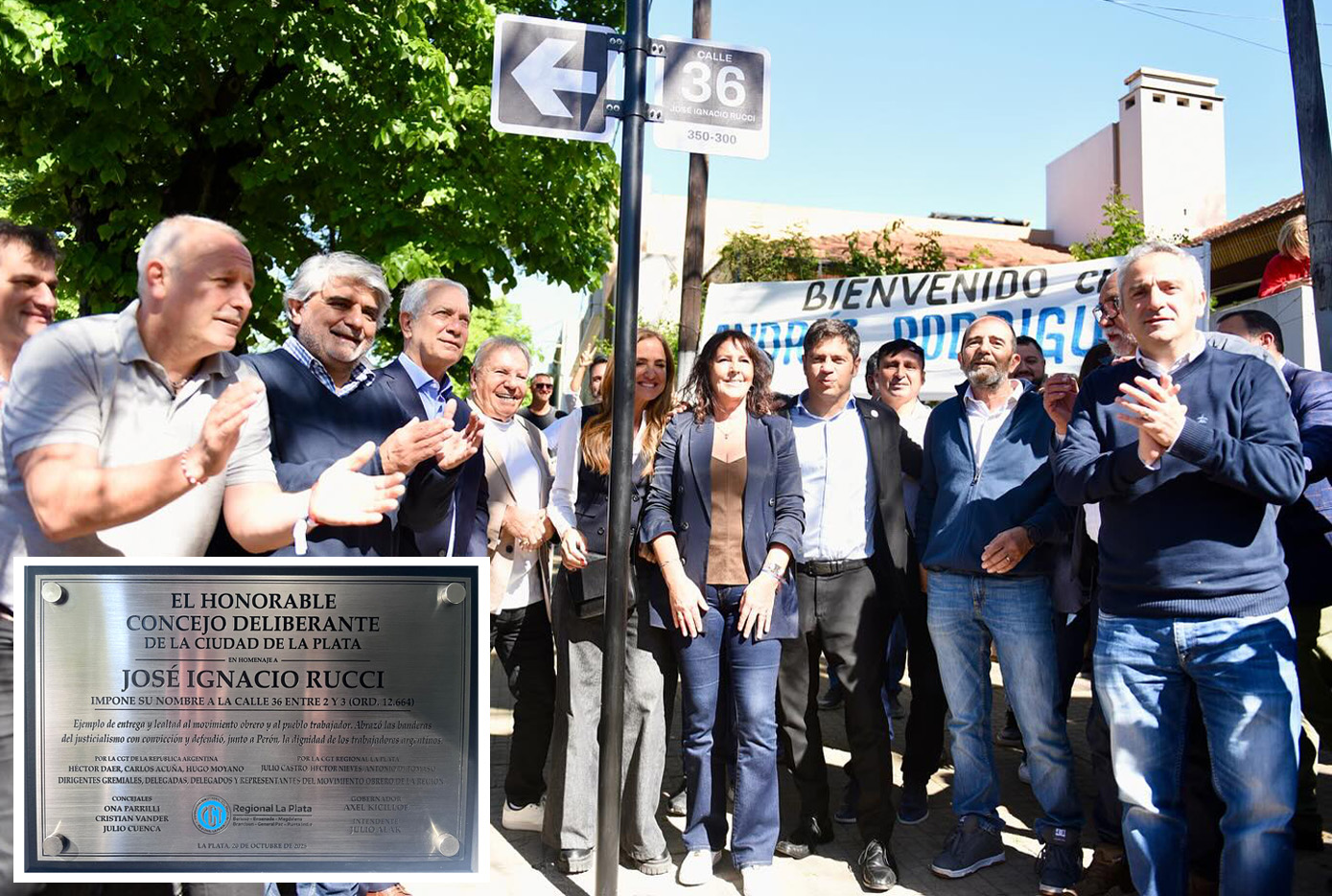 En este contexto, se procedió a hacer el cambio de nominación de un tramo de la calle 36 -entre 2 y 3-, que pasó a llamarse «José Ignacio RUCCI» a partir de ser aprobado el proyecto en el Concejo Deliberante platense. En este sentido, Julio ALAK manifestó que «para el municipio de La Plata es una enorme alegría poder denominar hoy a la calle 36 con el nombre de José Ignacio RUCCI, quien fue clave en el proyecto de unión nacional». Seguidamente, Aníbal RUCCI expresó que «el movimiento obrero es una pieza clave para la construcción de una sociedad más justa y equitativa».