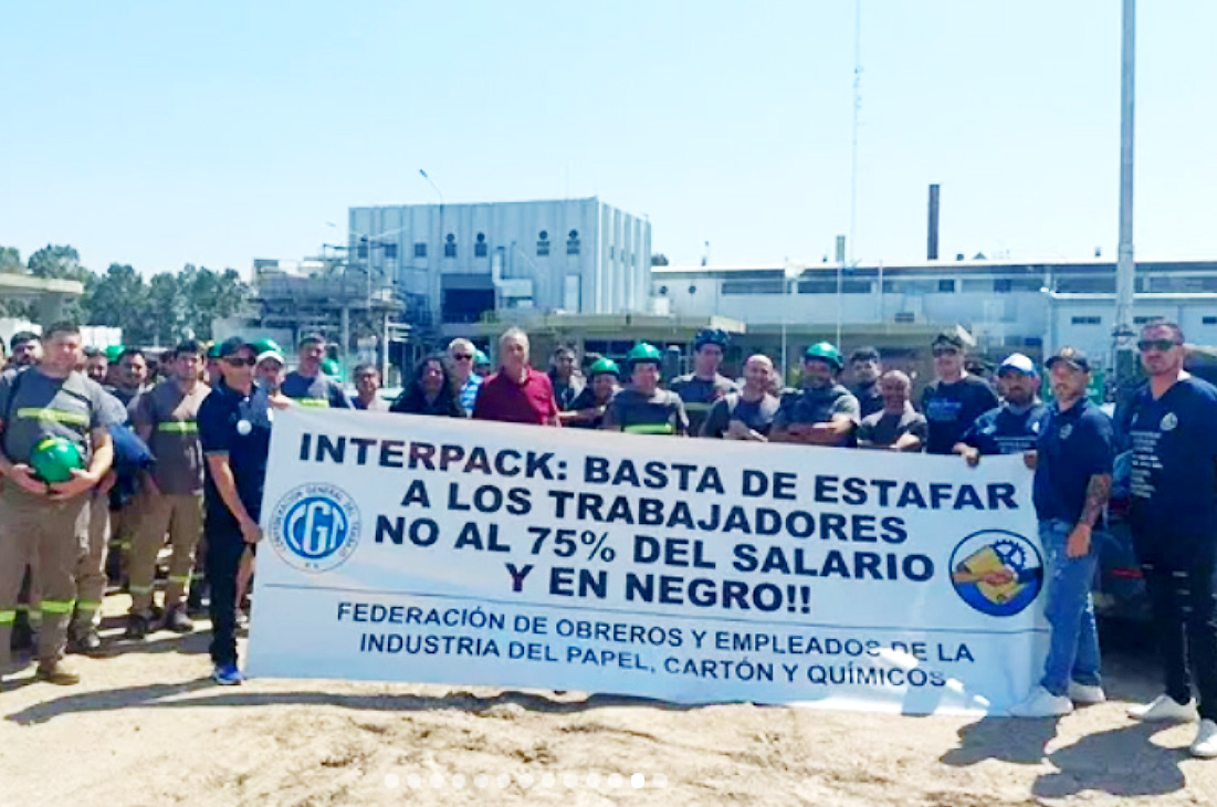 Por otra parte, el 15 de octubre el Consejo Ejecutivo de la FOEIPCYQ con sus referentes Pablo AYALA y Luis DONELLI, acompañados por el asesor letrado Dr. César GARONE y cuatro delegados de Celulosa Argentina planta Zárate, asistieron a la audiencia prevista con Interpak de Torquinst como consecuencia de la seguidilla de suspensiones que viene aplicando la Empresa con una rebaja Salarial de más del 25% desde hace más de un año, que además habían abonado en negro.