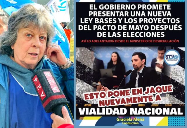 El Sindicato de TRABAJADORES VIALES y Afines (STVYARA) liderado por Graciela ALEÑÁ, se mantiene en ESTADO de ALERTA al considerar que el Gobierno de MILEI ya piensa en el escenario legislativo posterior al 10 de diciembre, cuando se produzca el recambio legislativo en ambas cámaras. Y advierte que, «pese a que todavía no tiene garantías de que el Congreso apruebe la ley de presupuesto 2026, pretende ir por más y adelantó que presentará una segunda versión de la Ley de Bases, como así también los proyectos que surjan del seno del Consejo de Mayo».