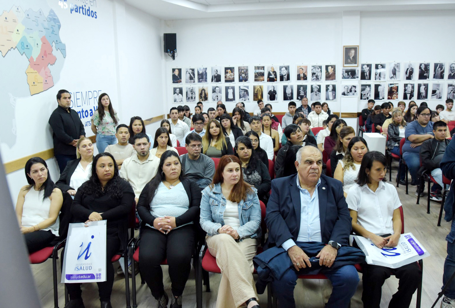 La ceremonia, que tuvo lugar en el salón auditorio de la Sede social de la ATSA el 24 de octubre, contó además con la presencia del secretario de Capacitación del Sindicato de Salud Pública, Julio REYNOSO, por la Universidad ISALUD la directora de la Carrera del Ciclo de Complementación Curricular de la Licenciatura en Enfermería, Lic. Gabriela FELIPPA. Además, compartieron el acto miembros del Consejo Directivo de SANIDAD ATSA La Plata y del Cuerpo de Delegados y Delegadas.