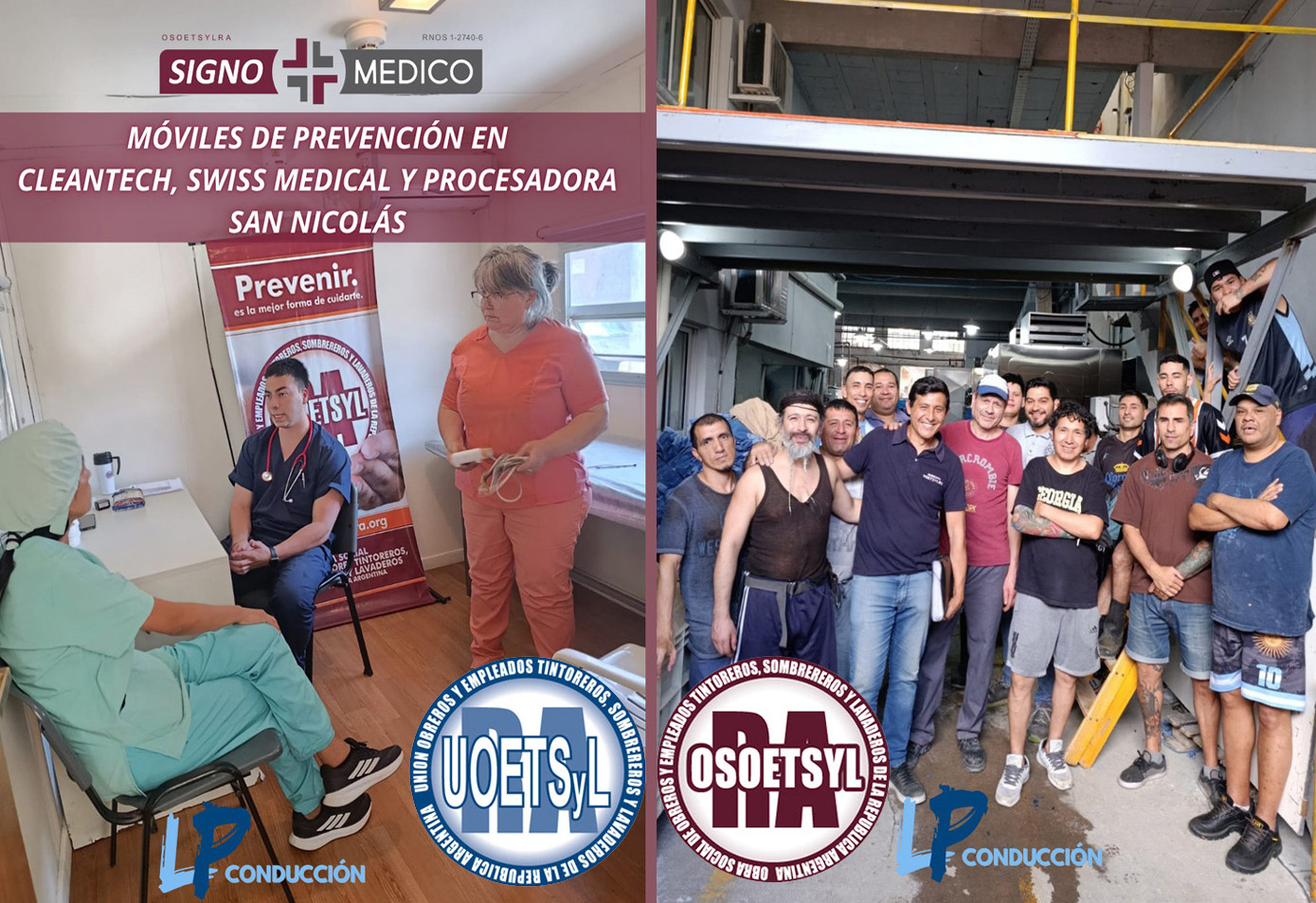 En este marco, en el corriente mes de noviembre los Móviles de Prevención «SIGNO MÉDICO» de OSOETSYLRA visitaron Cleantech, Swiss Medical y Procesadora San Nicolás, donde las y los trabajadores pudieron realizarse chequeos médicos preventivos gratuitos y recibir información sobre su cobertura. «Porque cuidarte es nuestra prioridad y estamos donde vos nos necesitas», manifestaron.