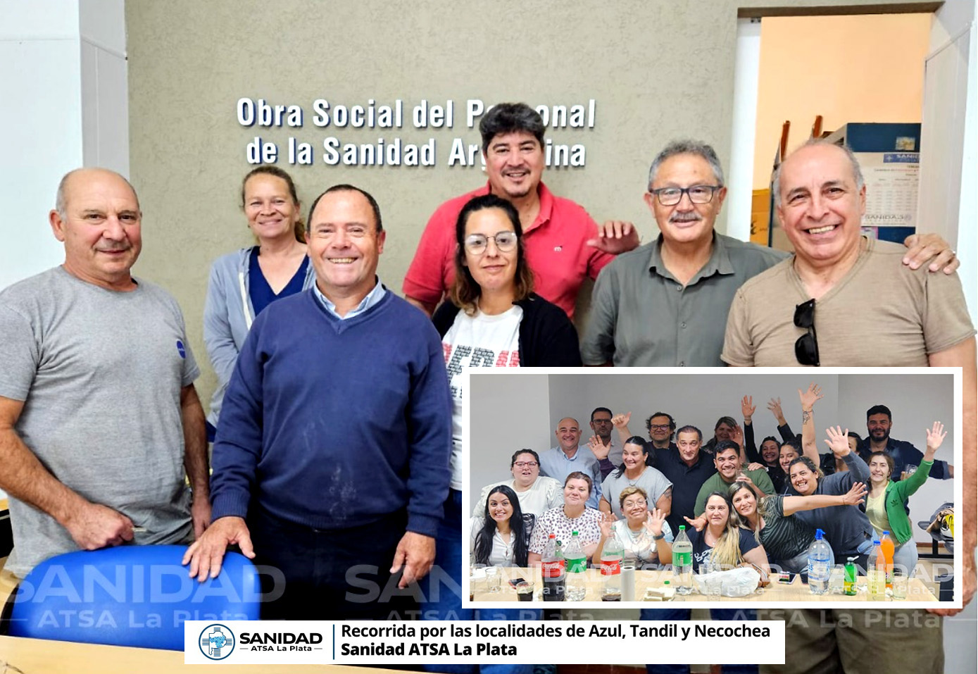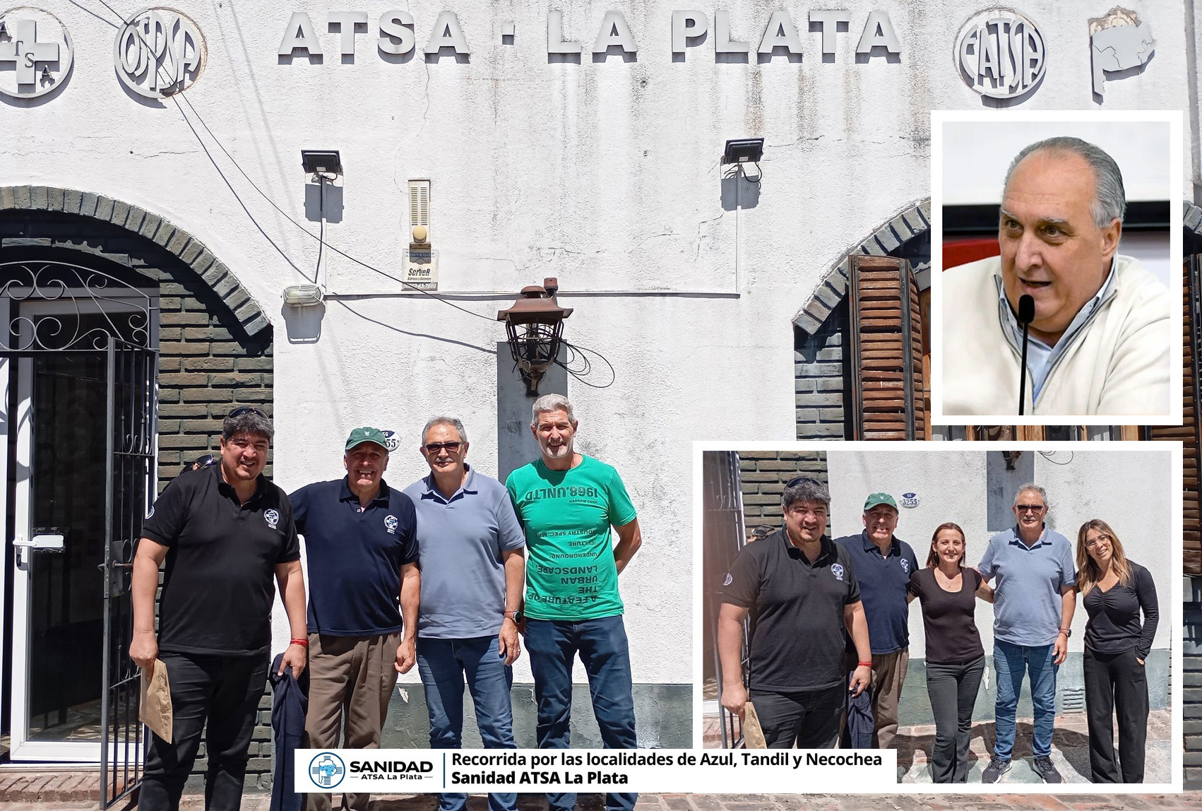 En cuanto a las visitas realizadas a las distintas delegaciones del interior de ATSA La Plata, la comitiva del gremio estuvo conformada por el Secretario de Finanzas, Eduardo NOGUEIRA, el Secretario de Capacitación, Osvaldo FRANCHI y el Secretario de Organización, Jorge ROPAT, quienes continuando con las recorridas se trasladaron junto con el delegado de USICOM Tandil Guillermo RIGGIERI, hasta la delegación de Necochea se reunieron con los delegados locales, RODRIGO y FLORENCIA para tratar entre otros temas, la organización de la colonia para los hijos de los afiliados, acordándose la realización de la misma en el balneario Zeus.