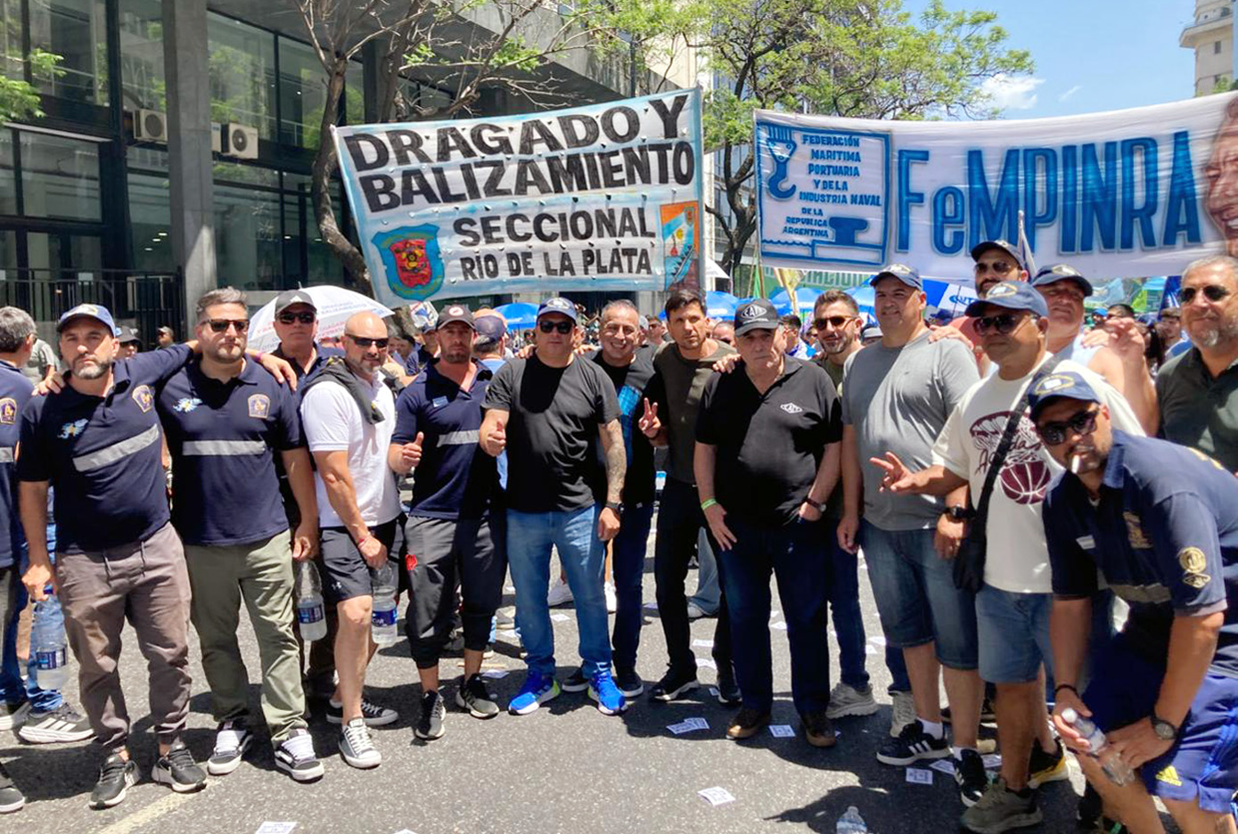 La Confederación Argentina de Trabajadores del Transporte (CATT) y la Federación Marítima Portuaria y Naval (FEMPINRA), entidades gremiales que conduce Juan Carlos SCHMID (Dragado y Balizamiento), movilizó el pasado 18 de diciembre a Plaza de Mayo en oposición al proyecto de REFORMA LABORAL del Gobierno que va en atropello de los derechos de los trabajadores y de la actividad sindical. Marcharon en base a cuatro ejes a considerar: La ULTRAACTIVIDAD de los Convenios Colectivos de Trabajo, la defensa del DERECHO a HUELGA y las INDEMNIZACIONES, el rechazo a la declaración del TRANSPORTE como actividad ESENCIAL y la denuncia a las DESREGULACIONES del SECTOR.