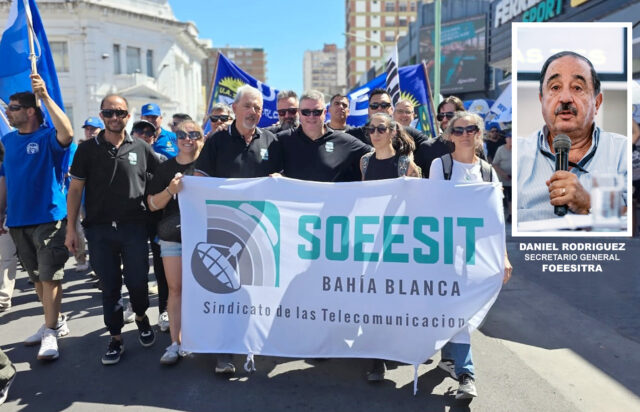 La Federación de Trabajadores y Trabajadoras de las Telecomunicaciones y las Tecnologías de la Información y las Comunicaciones – TICS- (FOEESITRA), liderada desde la Secretaría General por Daniel RODRÍGUEZ, a su vez es Secretario Adjunto de la Confederación de Sindicatos de las Telecomunicaciones (CONSITEL), se hizo presente en la marcha convocada por la CGT a Plaza de Mayo en CABA, como en las que tuvieron lugar en distintos puntos del país en rechazo a la Reforma Laboral impulsada por el gobierno nacional.