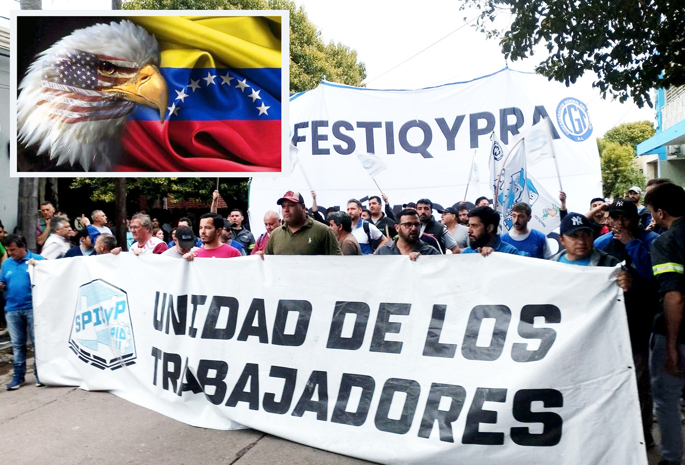 A través de un comunicado, la Federación de Sindicatos de Trabajadores de la Industria Química y Petroquímica de la República Argentina (FESTIQYPRA), que conduce Omar BARBERO desde la Secretaría General, acompañado por Edgardo GÓMEZ en la Secretaría Adjunta, señala que «las amenazas, sanciones, bloqueos y maniobras de desestabilización no hacen más que profundizar los conflictos, afectar a los pueblos trabajadores y vulnerar el derecho de las naciones a decidir libremente su destino político, económico y social sin tutelajes externos».