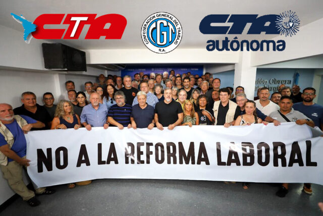A través de un documento titulado: NO AL PACTO CONTRA LAS Y LOS TRABAJADORES, el Frente de Unidad y Fuerza Sindical de las CTA y CGTRA deja en claro que «EL FUTURO DEL TRABAJO SE DECIDE CON NOSOTROS. NADA DE LOS TRABAJADORES SIN LOS TRABAJADORES», enfatizan las más de doscientas organizaciones sindicales de las CTA y CGTRA que rechazan enérgicamente el proyecto regresivo de Reforma Laboral impulsado por el Gobierno nacional. Remarcando que, «por la magnitud de los derechos que deroga, por la extensión de los temas que abarca y por la profundidad de los retrocesos que introduce, este proyecto sólo es comparable con la reforma laboral implementada durante la dictadura cívico-militar de 1976», define con contundencia.