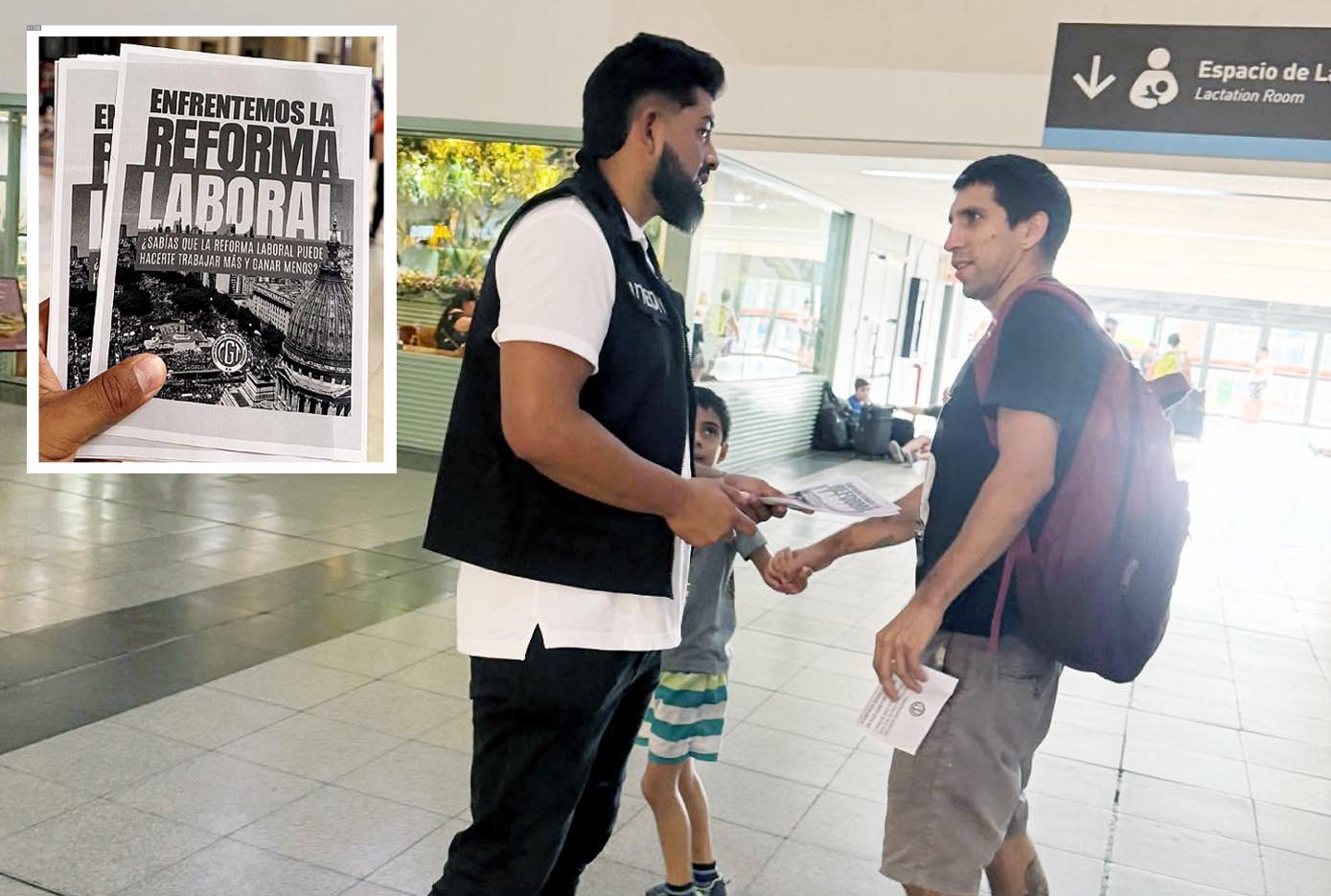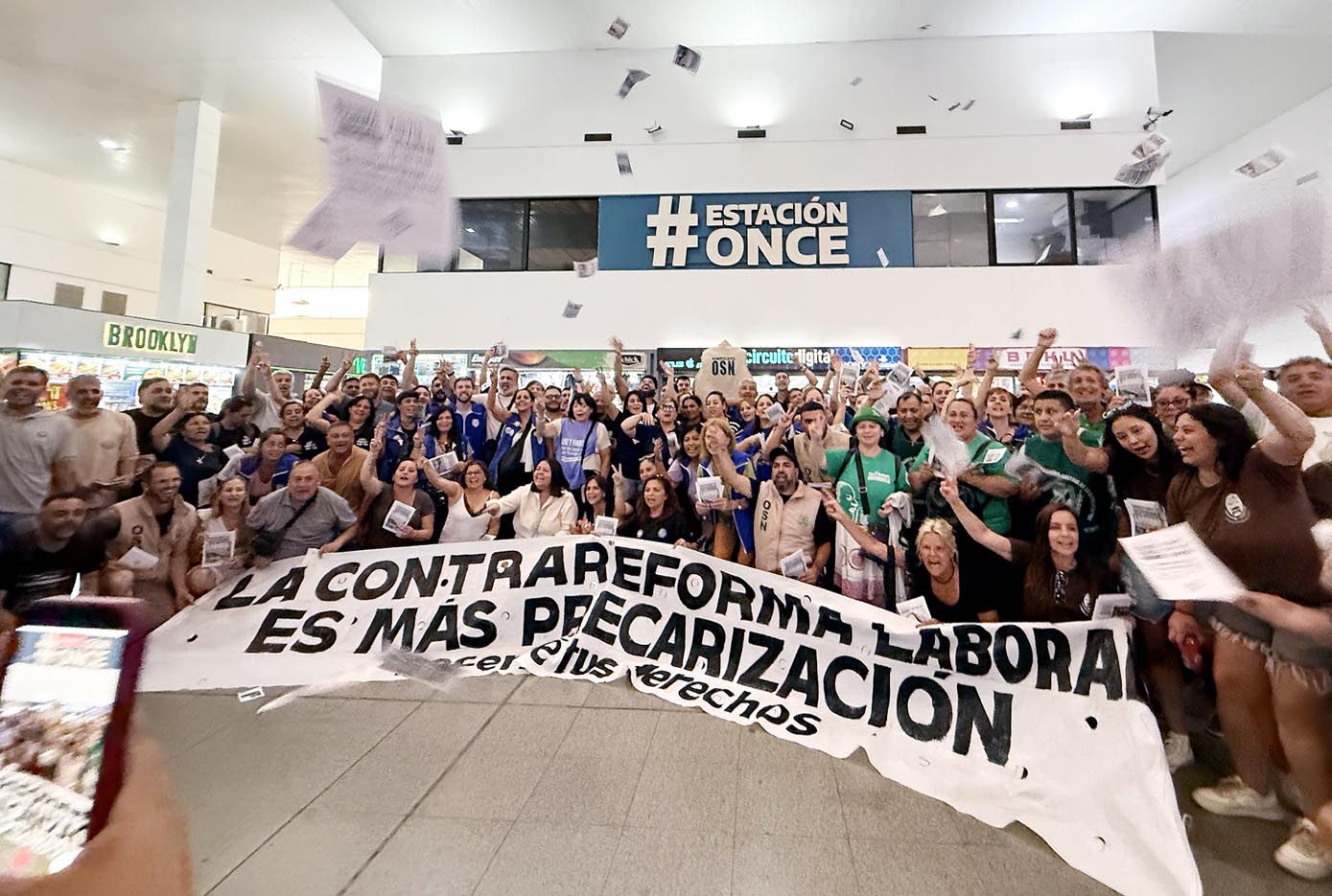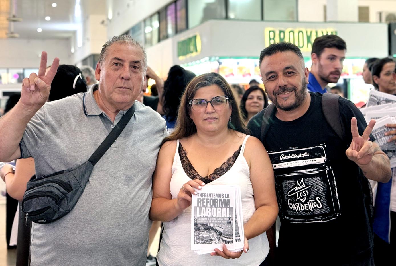 En este contexto, presentes en la popular Estación cabecera del Ferrocarril Sarmiento en el barrio porteño de Once, GARCIA, LAZZARO y BARRIOS, junto a compañeros y compañeras de otros gremios adheridos a la Central Obrera como es el caso de Maxi CORREA de UTEDYC, cumplieron con el objetivo. «Debemos alertar a las familias trabajadoras sobre las graves consecuencias de una -falsa- ‘modernización’ laboral que viene a implementar viejas fórmulas de explotación y flexibilización: derechos avasallados, menos empleo, menos salario y más precarización, para garantizar las ganancias de unos pocos».