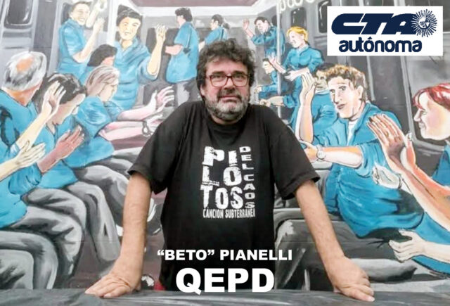 Con profundo pesar el movimiento obrero concentrado en las distintas centrales sindicales CGTRA, CTA Autónoma y CTA de los Trabajadores, despidió a Roberto «BETO» PIANELLI, secretario general del popular sindicato de los METRODELEGADOS, la Asociación Gremial de Trabajadores del SUBTE y PREMETRO, dirigente sindical que falleció este jueves 29 de enero.