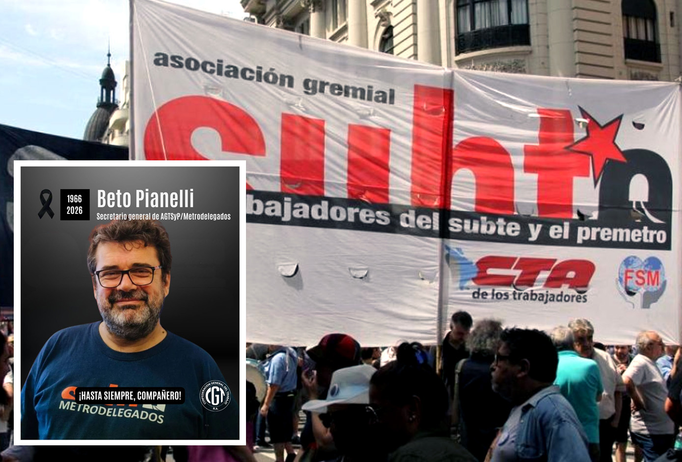 En este marco, la Confederación General del Trabajo de la República Argentina (CGTRA), señaló que «con profundo dolor despedimos a «Beto» PIANELLI, secretario general de los METRODELEGADOS, referente histórico en la defensa de los derechos de las y los trabajadores».