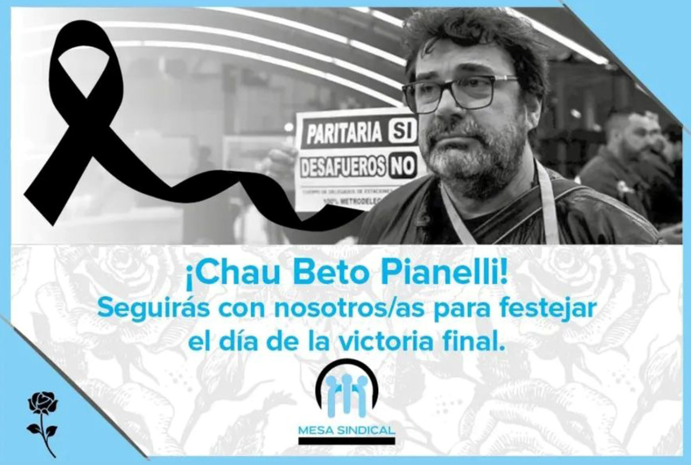 «Con enorme tristeza despedimos al compañero “BETO” PIANELLI cuya vida estuvo marcada por el coraje y la coherencia. Su compromiso lo llevó a asumir el desafío de liderar la construcción de un nuevo sindicato y abriendo caminos donde otros veían obstáculos», señaló el secretario general de la CTA Autónoma, Hugo «CACHORRO» GODOY.