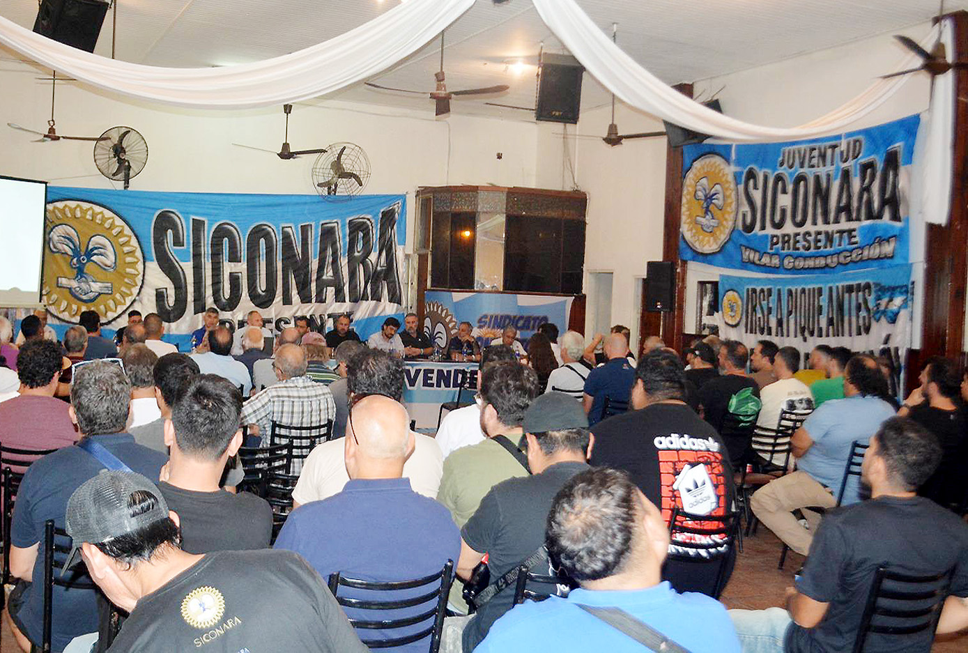 «Con una masiva participación y un respaldo total para dar la pelea» a la conducción encabezada por su Secretario General Mariano Vilar, el Sindicato Conductores Navales de la República Argentina llevó adelante la Asamblea Extraordinaria del SICONARA, con la participación de más de 120 afiliados que colmaron el espacio y, a mano alzada, aprobaron la totalidad del orden del día y otorgaron mandato pleno a la conducción nacional.