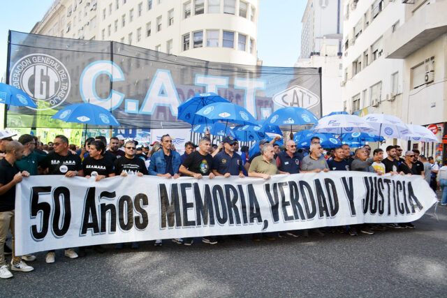 Los referentes de las organizaciones sindicales de la FEMPINRA marcharon junto a la Confederación Argentina de Trabajadores del Transporte CATT -a la que también están alineados-, para «recordar una de las épocas más oscuras en la historia de nuestro país».