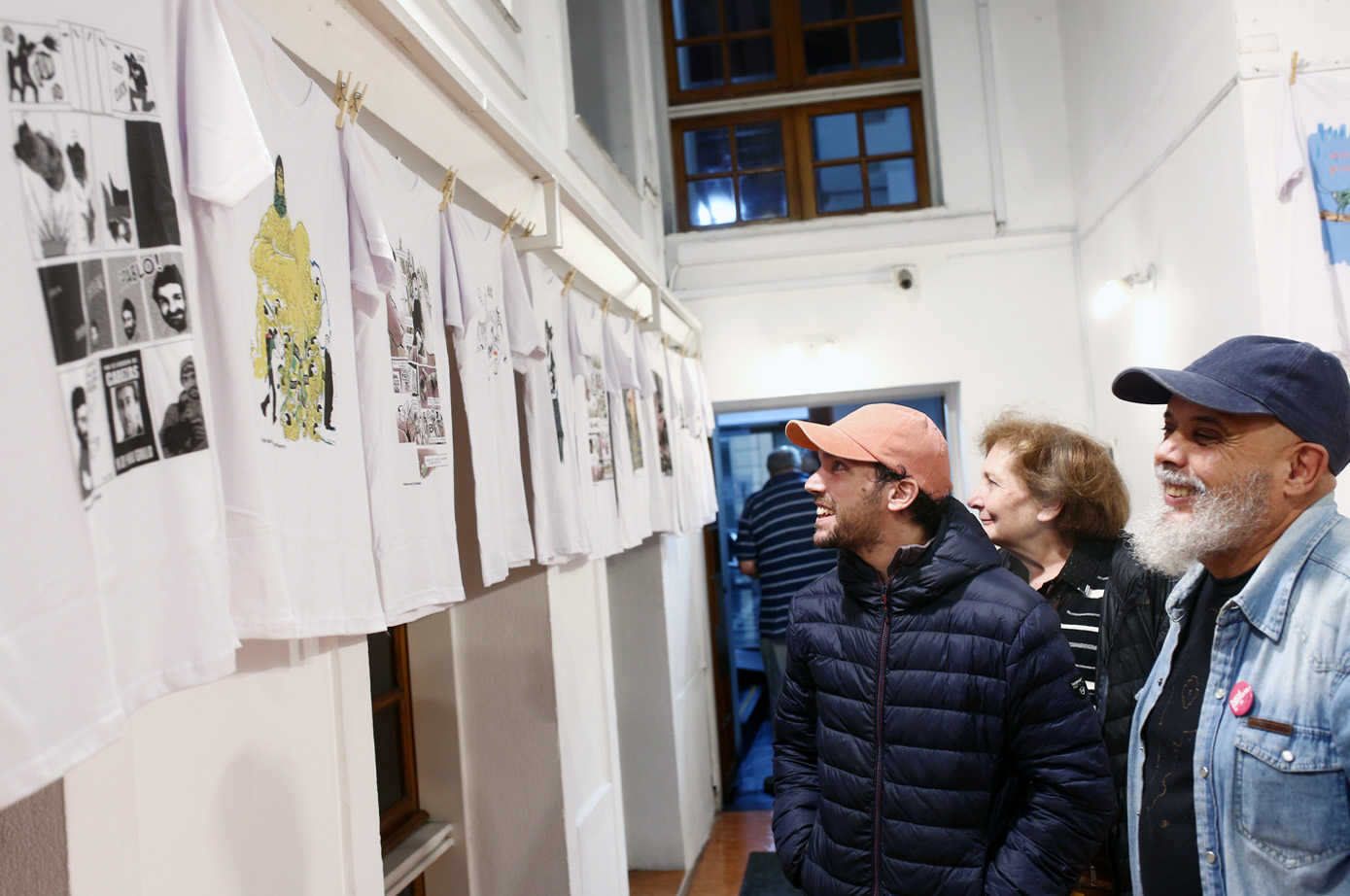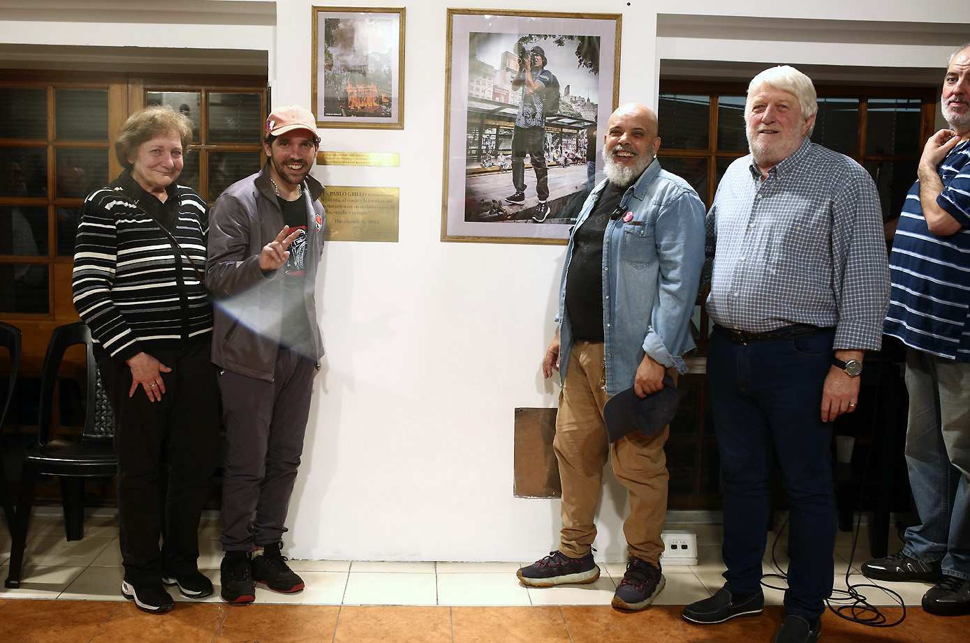 El descubrimiento de la placa permitió además apreciar dos cuadros alegóricos a la lucha de Pablo Grillo en el campo de acción en la zona de Congreso, uno con una de las tomas registrada con su cámara en medio de la protesta con el Congreso de fondo, y la segunda con su figura de pie a cabeza «empuñando» la cámara fotográfica en el contexto de la movilización, registrada y trabajada artísticamente por su colega Diego López. El encuentro permitió también, exhibir la muestra itinerante que impulsa la APSEE desde la Secretaría de Prensa a cargo de Gabriel Fernández, muestra de remeras con imágenes realizadas por distintos artistas plásticos y dibujantes que reflejan la resistencia contra la represión a la protesta social que padece la comunidad en su conjunto, sin reparo alguno para con los jubilados, discapacitados, docentes, personal de la salud, las/los trabajadores, y las organizaciones y colectivos que las/los representan.