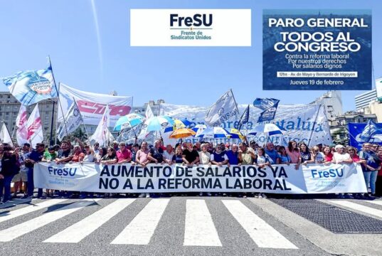 FRESU: Frente Sindicatos Unidos de CGTRA y las CTA al PARO NACIONAL con movilización al Congreso el 19/2